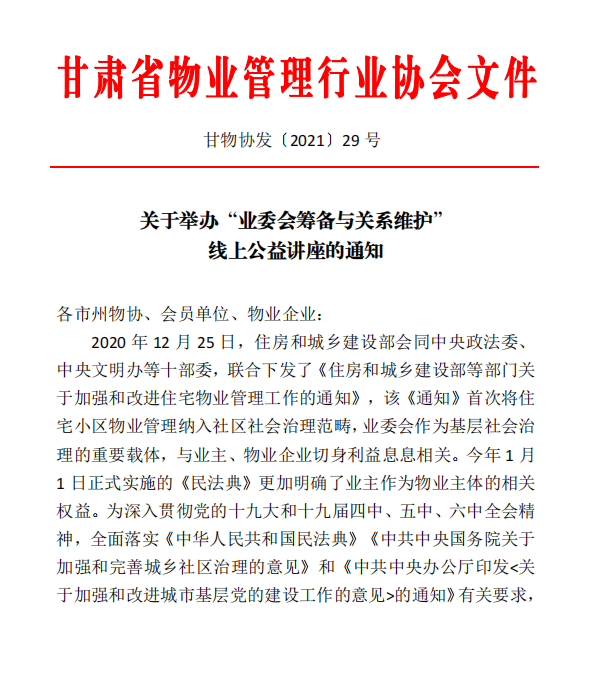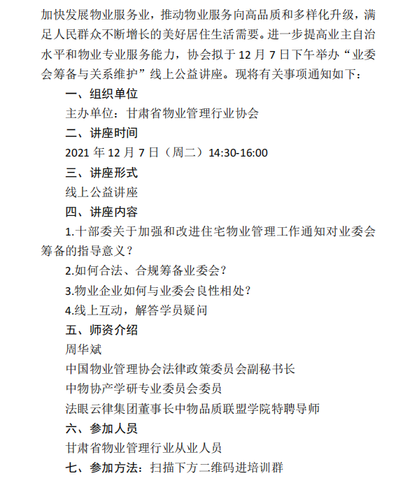 关于举办“业委会筹备与关系维护”线上公益讲座的通知