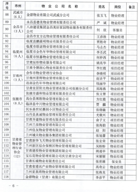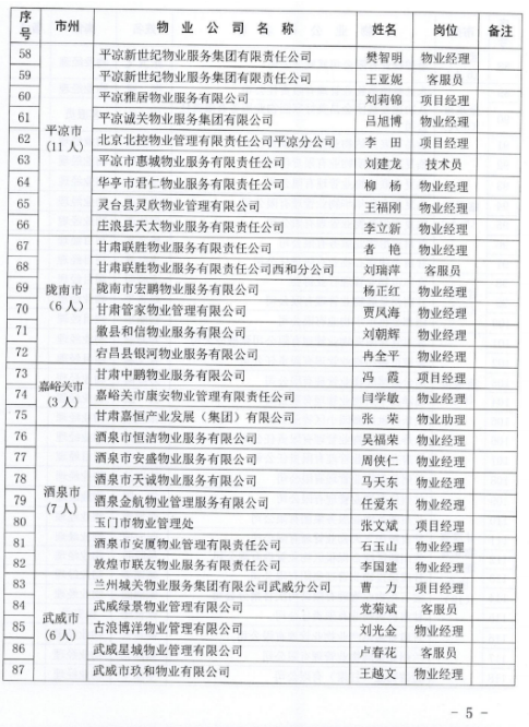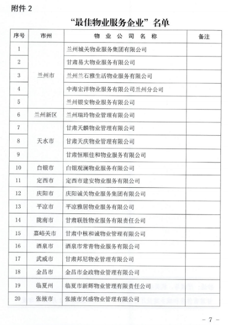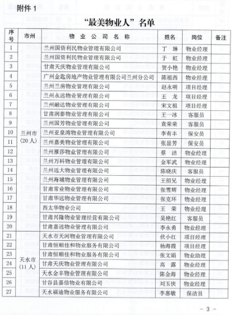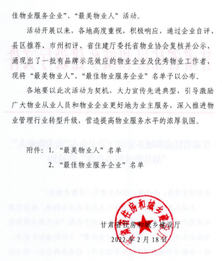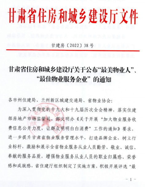 转发 | 甘肃省住房和城乡建设厅关于公布“最美物业人”和最佳物业服务企业”的通知