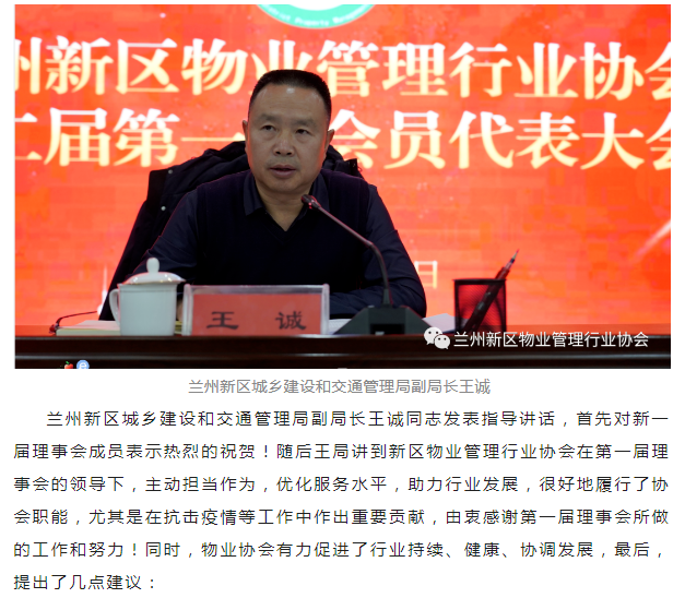 祝贺兰州新区物业管理行业协会第二届第一次会员代表大会顺利召开