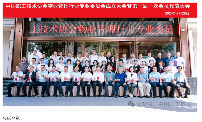 2024年8月28日,中国职工技术协会物业管理行业专业委员会成立大会暨一届一次会员代表大会在兰州顺利召开。