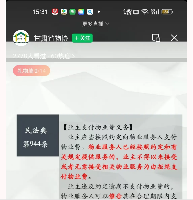 此次讲座受到了广泛关注和积极参与,来自全省各地、甚至新疆、宁夏等地的物业企业、从业人员也参加此次线上公益讲座。他们表示,通过讲座学习,不仅增强了法律意识,掌握了物业费清收的正确方法,还学会了如何运用非暴力沟通技巧提升服务质量,为构建和谐社区贡献力量。本次参训人数最高达到了近3000人。